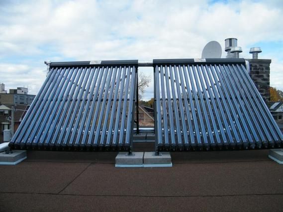 Our split solar water heating system uses computer controlled pumps, valves, PV panels and controllers to circulate water or other heat-transfer fluids through the solar collectors. Our evacuated tube collectors can be used in either closed-loop or open-loop configurations.